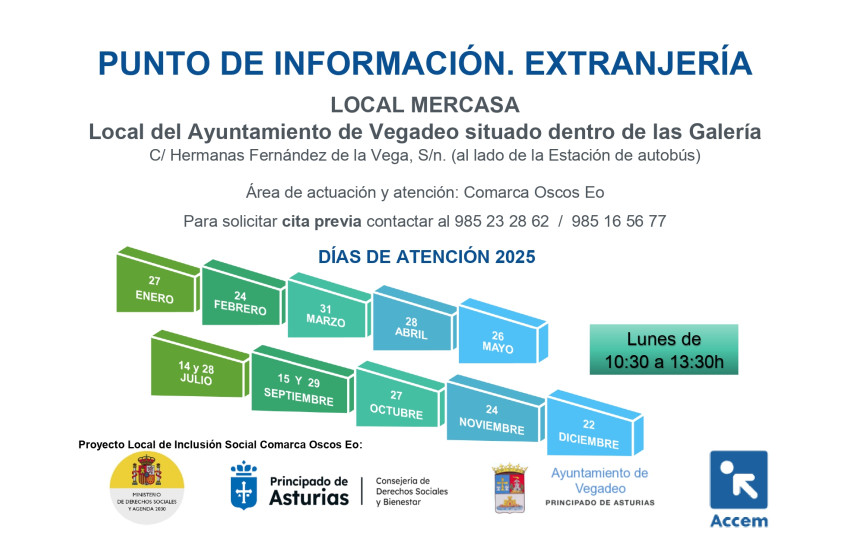 El Ayuntamiento de Vegadeo, en colaboración con Accem, establece un Punto de Información sobre Extranjería.